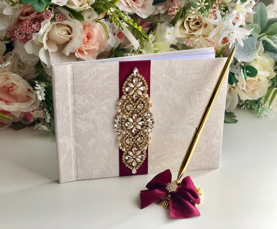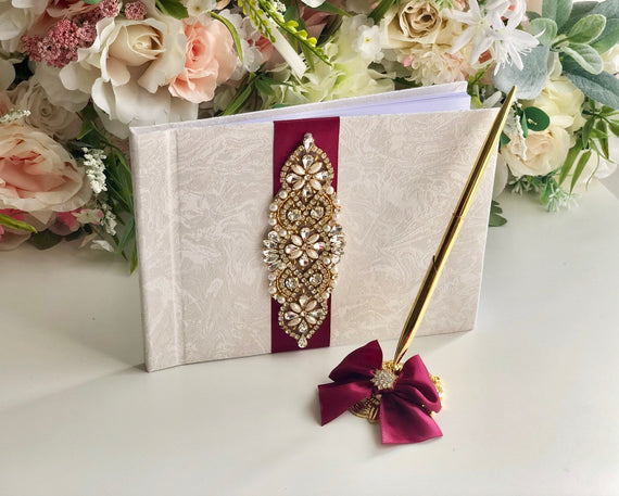 Set of three - Wedding Guest Book and Pen with Pen Stand.