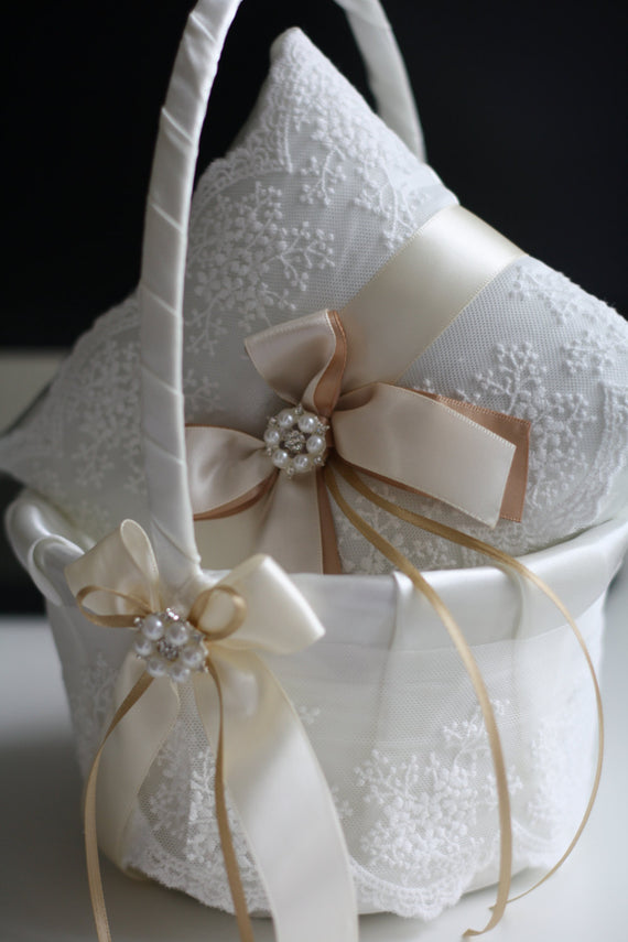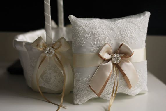 All the pillows are tender, soft and light like a feather. Absolutely gorgeous ring holder will add so much more value to your wedding ceremony! We use polyester fiber that was made with recycle materials and cover it with the same high quality satin fabrics that we use for our baskets. If you buy a set of pillow and basket - you will always get the same satin material to match it all. So no worries - we care about your wedding accessories as much as we can.