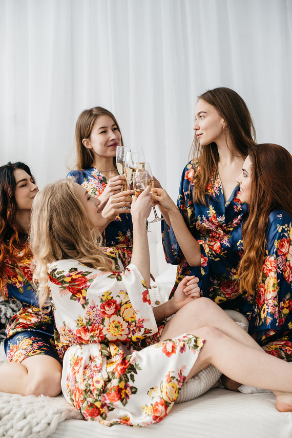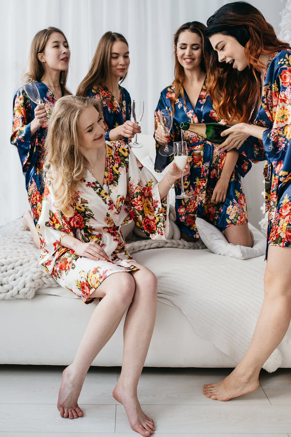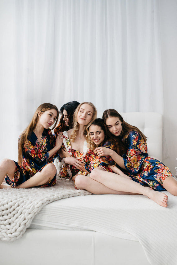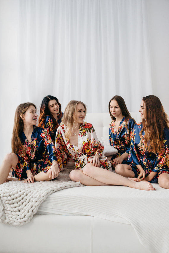 Navy Wedding Robe, Navy Bridal Robe, Bridesmaid robes, Bridesmaid Gift, Navy Satin Robe, Floral Robe, Navy Blue Robe, Bridal Party Gift