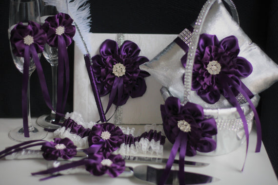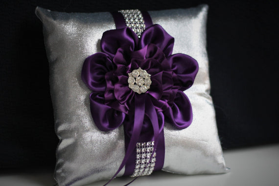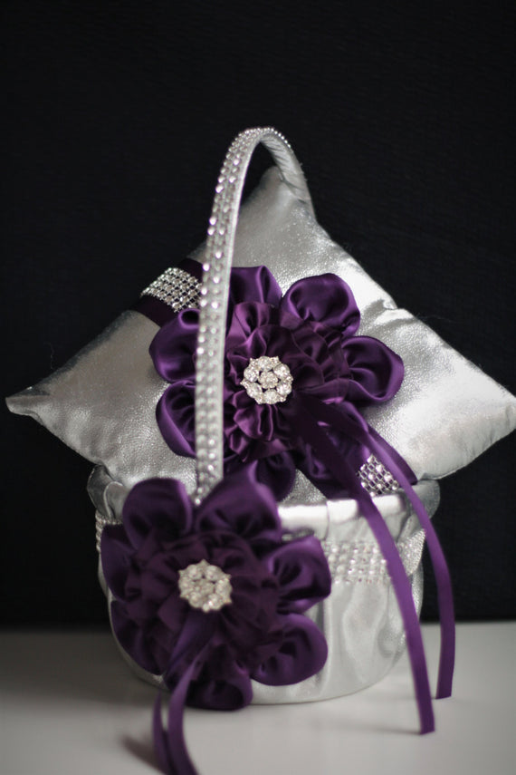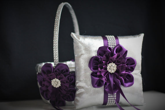Plum Wedding Basket \ Plum Silver Wedding Ring Bearer Pillow \ Plum Silver Bearer \ Plum Silver Basket \ Plum Wedding Pillow Basket Set